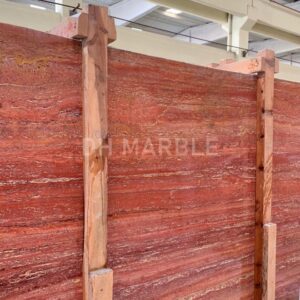 Хотя красный травертин очень популярен, он входит в число самых редких травертинов. В Турции его добывают в основном в провинциях Кютахья и Денизли. Он создает очень эстетичный вид благодаря белым и серым прожилкам на красном травертине. Благодаря эстетичному внешнему виду области его использования продолжают расширяться. Травертины, пользующиеся большой популярностью за рубежом, можно предпочесть шлифованными или полированными.